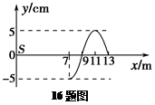 位于坐标原点的波源S产生一列沿x轴正方向传播的简谐横波,波速v=40m/s,已知t=0时刻波刚好传播到x=13 m处,如图所示.下列说法正确的是( )![]()