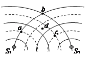 | A.该时刻a质点振动最弱,b、c质点振动最强,d质点振动既不是最强也不是最弱 |