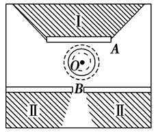如图所示,O是水面上一波源.实线圆、虚线圆分别表示该时刻的波峰、波谷,A是挡板,B是小孔.不考虑波的反射因素,则再经过一段时间后,水面上的波形将分布于( )![]()