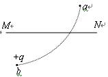 如图所示,MN是由一个正点电荷Q产生的电场中的一条电场线,一个带正电的粒子+q飞入电场后,在电场力的作用下沿一条曲线运动,先后通过a、b两点,不计粒子的重力,则( )![]()