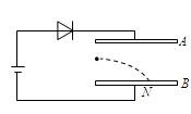 如图所示,平行板电容器AB两极板水平放置,A在上方,B在下方,现将其和二极管串联接在电源上,已知A和电源正极相连,二极管具有单向导电性,一带电小球沿AB 中心水平射入,打在B极板上的N点,小球的重力不能忽略,现通过上下移动A板来改变两极板AB间距(两极板仍平行),则下列说法正确的是 ( )![]()