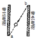 如图所示,竖直放置的平行金属板带等量异种电荷,一带电微粒沿图中直线从a向b运动,下列说法中正确的是 ![]()