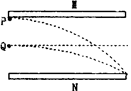 带有等量异种电荷的平行金属板M、N水平放置,两个电荷P和Q以相同的速率分别从极板M边缘和两板中间沿水平方向进入板问电场,恰好从极板N边缘射出电场,如图所示。若不考虑电荷的重力和它们之间的相互作用,下列说法正确的是![]()