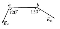 如图,为真空中某一点电荷Q产生的电场,a、b分别是其电场中的两点,其中a点的场强大小为Ea,方向与a、b连线成120°角;b点的场强大小为Eb,方向与a、b连线成150°角。一带负电的检验电荷q在场中由a运动到b,则![]()