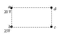 如图所示,a、b、c、d是匀强电场中的四个点,它们正好是一个矩形的四个顶点。电场线与矩形所在平面平行。已知a点的电势为20V,b点的电势为25V,d点的电势、c点的电势可能为为( ) ![]()