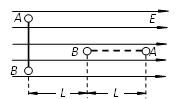 如图所示,绝缘轻杆两端固定带电小球A和B,轻杆处于水平向右的匀强电场中,不考虑两球之间的相互作用。初始时轻杆与电场线垂直(如图中实线位置),将杆向右平移的同时顺时针转过90°(如图中虚线位置),发现A、B两球电势能之和不变。根据图中给出的位置关系,可判断下列说法中正确的是 ( )![]()