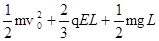 如图所示,在竖直平面内有一边长为L的正方形区域处在场强为E的匀强电场中,电场方向与正方形一边平行。一质量为m、带电量为q的小球由某一边的中点,以垂直于该边的水平初速V0进入该正方形区域。当小球再次运动到该正方形区域的边缘时,具有的动能可能为( )![]()