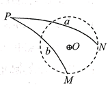 如图所示,在圆心O处固定一正点电荷,现从P点以相同的速率发射两个检验电荷a、b,分别沿PM、PN运动到M、N两点,M、N都在以O为圆心的圆上。若检验电荷a、b的质量、电荷量均相等,则下列判断正确的是![]()