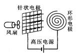 空气中的负离子对人的健康极为有益.人工产生负离子的最常见方法是电晕放电法.如图所示,一排针状负极和环形正极之间加上直流高压电,电压达5 000 V左右,使空气发生电离,从而产生负氧离子排出,使空气清新化,针状负极与环形正极间距为5 mm,且视为匀强电场,电场强度为E,电场对负氧离子的作用力为F,则( )![]()