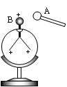 如图所示,有一带正电荷的验电器,当一金属球A靠近验电器的小球B时,验电器金属箔张角减小,则金属球A![]()