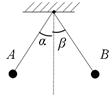 如图所示,把大小可以不计的带有同种电荷的小球A和B互相排斥,静止时,绝缘等长细线与竖直方向的夹角分别为α和β,且α<β,由此可知 ( )![]()
