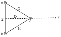 在光滑的绝缘水平面上,有一个边长为L的正三角形abc,顶点a、b、c处分别固定一个电荷量为q的正电荷,如图所示,D点为正三角形外接圆的圆心,E、G、H点分别为ab、ac、bc的中点,F点为E点关于电荷c的对称点,下列说法中正确的是( )![]()