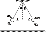 如图所示,两个可视为质点的小球1和2带有同种电荷,质量分别为m1、m2,带电量分别为q1、q2,q1>q2,用绝缘细线悬挂后,细线与竖直方向的夹角分别为α、β,α=β,两球位于同一水平线上。某时刻将两细线同时剪断,则![]()