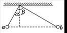 如图所示,a、b是两个带有同种电荷的小球,用绝缘丝线悬挂于同一点,两球静止时,它们距水平面的高度相等,绳与竖直方向的夹角分别为α、β,且β>α.若同时剪断两根细线,空气阻力不计,两球带电荷量不变,则( )![]()