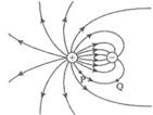 某静电场的电场线分布如图所示,图中P、Q两点的电场强度的大小分别为EP和EQ,电势分别为UP和UQ,则![]()