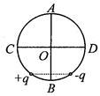 AB和CD为圆上两条相互垂直的直径,圆心为O。将电量分别为+q和-q的两点电荷放在圆周上,其位置关于AB对称且距离等于圆的半径,如图所示。要使圆心处的电场强度为零,可在圆周上再放一个适当的点电荷Q,则该点电荷Q![]()