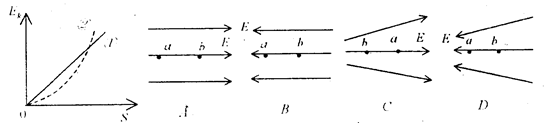 有一个正检验电荷仅受电场力的作用,分别从电场中的a点由静止释放,动能Ek随位移s变化的关系图象如图1中的①、②、③图线所示,其中图线①是直线。图2中甲是匀强电场,乙是孤立的正点电荷形成的电场,丙是等量异号点电荷形成的电场(a、b位于两点电荷连线上,且a位于两点电荷连线中点处),丁是等量正点电荷形成的电场(a、b位于两点电荷连线中垂线上,且a位于两点电荷连线中点处),则下列说法正确的是:( )![]()