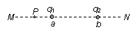 如图所示,在a、b两点上放置两个点电荷,它们的电荷量分别为q1、q2,MN是连接两点的直线,P是直线上的一点,下列哪种情况下P点的场强可能为零( )![]()