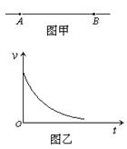 如图所示,在某一电场中有一条直电场线,在电场线上取AB两点,将一个电子由A点以某一初速度释放,它能沿直线运动到B点,且到达B点时速度恰为零,电子运动的v-t图象如图所示。则下列判断正确的是 ( )![]()
