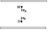 如图所示,带等量异号电荷的两平行金属板在真空中水平放置,M、N为板间同一电场线上的两点。一带电粒子(不计重力)以速度vM经过M点向下运动,一段时间后返回,以速度vN经过N点向上运动,全过程未与下板接触,则( )![]()