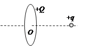 如图所示,带有正电荷量Q的细铜圆环竖直固定放置,一带正电荷量q的粒子从很远处沿水平轴线飞来并到达圆心O。不计粒子的重力。关于粒子的上述过程,下列说法中正确的是![]()