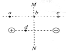 (2011·山东高考·T21)如图所示,在两等量异种点电荷的电场中,MN为两电荷连线的中垂线,a、b、c三点所在直线平行于两电荷的连线,且a与c关于MN对称,b点位于MN上,d点位于两电荷的连线上。以下判断正确的是( ) ![]()