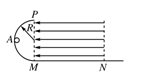 如右图所示,有一半圆弧光滑轨道,半径为R,在与圆心等高的位置静止放置一个带正电的小球A,其质量为m,M、N之间有一方向水平向左的匀强电场,让小球A自由滚下进入匀强电场区域,水平面也是光滑的,下列说法正确的是( ) ![]()