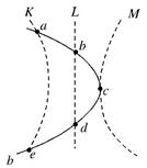 如图所示,图中K、L、M为静电场中的3个相距较近的等势面.一带电粒子射入此静电场中后,沿abcde轨迹运动.已知
