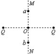 两个带电量均为Q的正电荷,固定于两点,它们连线的垂直平分线MN交其连线于O点,如图所示,现在MN上取a、b两点,且aO=Ob,将电荷q从a移至b的过程中![]()