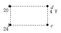 a、b、c、d是匀强电场中的四个点,它们正好是一个矩形的四个顶点,电场线与矩形所在平面平行。已知a点的电势为20 V,b点的电势为24 V,d点的电势为4 V,如图4所示,由此可知c点的电势为( )![]()