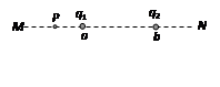 如图所示,在a、b两点上放置两个点电荷,它们的电荷量分别为q1、q2,MN是连接两点的直线,P是直线上的一点,下列哪种情况下P点的场强可能为零( )![]()