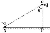 在光滑绝缘水平面的P点正上方O点固定了一电荷量为+Q的正点电荷,在水平面上的N点,由静止释放质量为m、电荷量为-q的带电小球,小球经过P点时速度为v,图中θ=60°,规定电场中P点的电势为零。则在+Q形成的电场中( )![]()