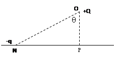 在光滑绝缘水平面的P点正上方O点固定一个电荷量为+Q的点电荷,在水平面上的N点,由静止释放质量为m,电荷量为-q的负检验电荷,该检验电荷经过P点时速度为v,图中θ=60º,规定电场中P点的电势为零。则在+Q形成的电场中( )![]()