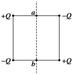 四个等量异种点电荷分别放置于正方形的顶点上,a 、b分别为所在边的中点,如图所示.一点电荷从图中a点沿直线移到b点的过程中,下列说法正确的是 ![]()
