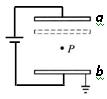 如图所示,两块水平放置的平行正对的金属板a、b与电池相连,在距离两板等远的P点有一个带电液滴处于静止状态。若将a板向下平移一小段距离,但仍在P点上方,则稳定后,下列说法中正确的是( )![]()