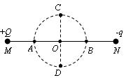 如图所示,分别在M、N两点固定放置两个点电荷+Q和-q (Q>q) ,以MN连线的中点O为圆心的圆周上有四点A、B、C、D,关于这四点的场强和电势,下列说法中正确的是![]()