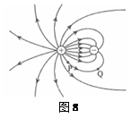 某静电场的电场线分布如图8所示,图中P、Q两点的电场强度的大小分别为EP和EQ,电势分别为UP和UQ,则![]()
