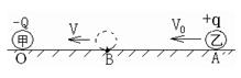 如图所示,一个电量为-Q的点电荷甲,固定在绝缘水平面上的O点.另一个电学量为+q及质量为m的点电荷乙,从A点以初速度v0沿它们的连线向甲运动,运动到B点时的速度为v,且为运动过程中速度最小值。已知点电荷乙与水平面的动摩擦因数为μ,AB间距离为L0,静电力常量为k,则下列说法正确的是( )![]()