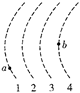 如图虚线所示为静电场中的等势面1、2、3、4,相邻的等势面之间的电势差相等,其中等势面3的电势为零.一带正电的点电荷在静电力的作用下运动,经过a、b点时的动能分别为26ev和5ev,当这一点电荷运动到某一位置,其电势能变为-8ev,它的动能应为: