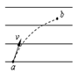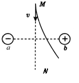 如图所示,a、b带等量异种电荷,MN为a、b连线的中垂线,现有一带电粒子从M点以一定的初速度v射出,开始时的一段轨迹如图中实线所示,若不计重力的作用,则在飞越该电场的过程中,下列说法中正确的是( ) ![]()