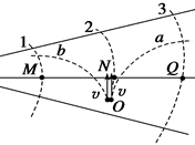 如图所示,实线为方向未知的三条电场线,虚线分别为等势线1、2、3,已知MN=NQ,带电量相等的a、b两带电粒子从等势线2上的O点以相同的初速度飞出.仅在电场力作用下,两粒子的运动轨迹如图所示,则 ( )