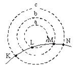如图,虚线a、b和c是某静电场中的三个等势面,它们的电势分别为Ua、Ub和Uc,Ua>Ub>Uc.一带正电的粒子射入电场中,其运动轨迹如实线KLMN所示,由图可知( )![]()