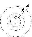 如图所示的同心圆(虚线)是电场中的一组等势线,一个电子只在电场力的作用下沿着直线由A向C运动时的速度大小越来越小,B为线段AC的中点,则有 ( )