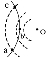 一带电粒子射入一固定在O点的点电荷的电场中,粒子运动轨迹如图中实线abc所示.图中虚线是同心圆弧,表示电场的等势面.不计重力,可以判断( )