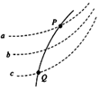 如图所示,虚线a、b、c代表电场中三个等势面,相邻等势面之间的电势差相等,即Uab = Ubc,实线为一带负电的质点仅在电场力作用下通过该区域时的运动轨迹,P、Q是这条轨迹上的两点,质点从Q到P过程下列说法正确的是 ( )![]()