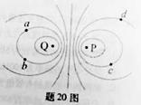 空间中P、Q两点处各固定一个点电荷,其中P点处为正电荷,P、Q两点附近电场的等势面分布如题图20图所示,a、b、c、d为电场中的4个点,则![]()