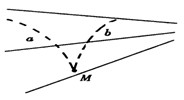 如图所示,实线为不知方向的三条电场线,从电场中M点以相同速度飞出a、b两个带电粒子,运动轨迹如图中虚线所示。则( )![]()
