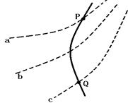 如图所示,虚线a、b、c代表电场中三个等势面,相邻等势面之间的电势差相等,即Uab=Ubc,实线为一带负电的粒子仅在电场力作用下依次通过PQ区域的运动轨迹。则下列判断正确的是( )![]()