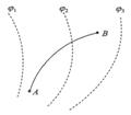 如图所示,图中两组曲线中实线代表电场线(方向未画出)、虚线代表等势线,点划线是 一个带电粒子仅在电场力作用下从A到B的运动轨迹,下列说法正确的是 ( )![]()