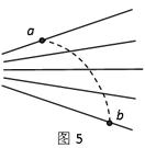 如图5所示,实线是电场中一簇方向未知的电场线,虚线是一个带正电粒子从a点运动到b点的轨迹,若带电粒子只受电场力作用,粒子从a点运动到b点的过程中![]()
